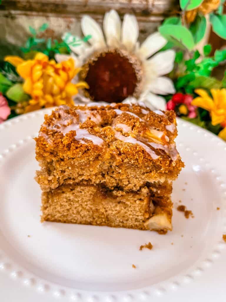 This apple cinnamon coffee cake tastes like a delicious combo of cinnamon sugar donuts and cozy apple pie! It has the perfect soft and fluffy texture. This coffee cake is gluten-free, dairy-free, simple to make, and so tasty!